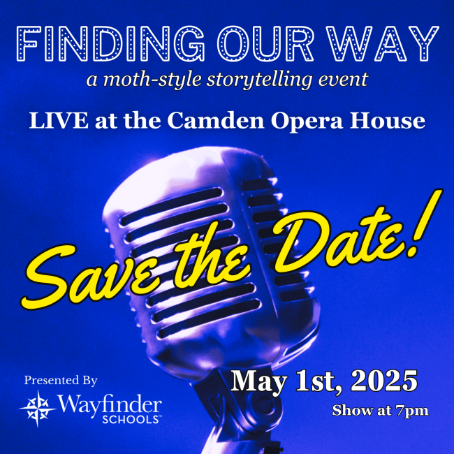 Mark your calendars for Thursday May 1st, 2025 – Wayfinder is returning to the Camden Opera House for Finding our Way – our moth-style storytelling event. Wayfinder graduates & other remarkable Mainers share touching, funny and heartfelt stories about their journeys in theater, art, film, business, writing, education, and the great outdoors. Download a flyer to share.
