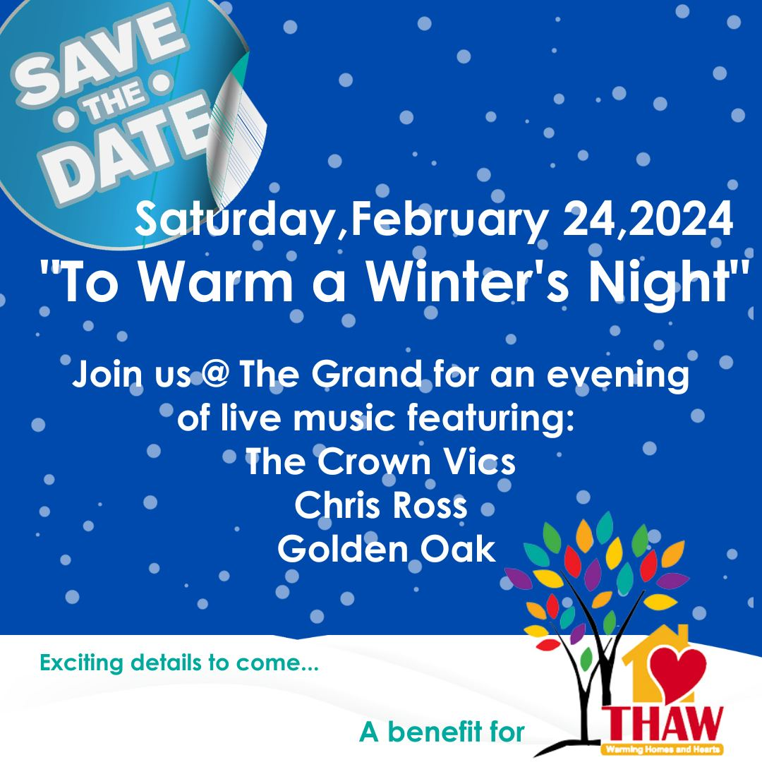Save the date of Saturday, February 24th, for Downeast Community Partner’s fundraiser, To Warm a Winter’s Night, to benefit THAW (The Heating And Warmth) Fund which provides emergency heating assistance to people in Hancock and Washington Counties. Join us at the Grand for an evening of live music featuring The Crown Vics, Chris Ross, and Golden Oak. Exciting details to come. Download a flyer to share.